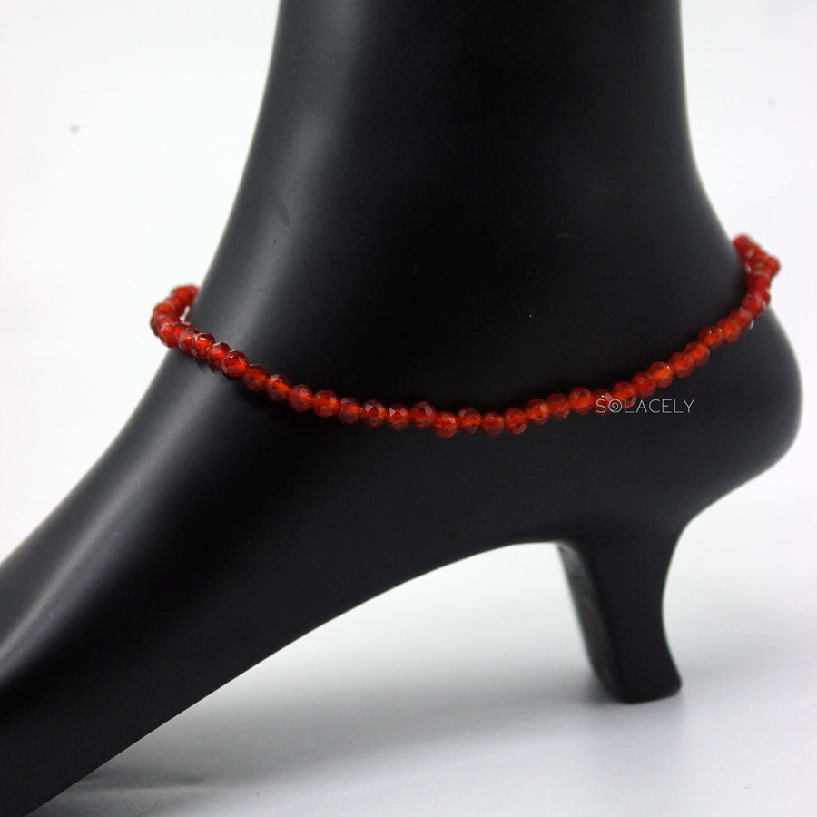 • carnelian ankelet Carnelian Anklet with 4mm Faceted Beads