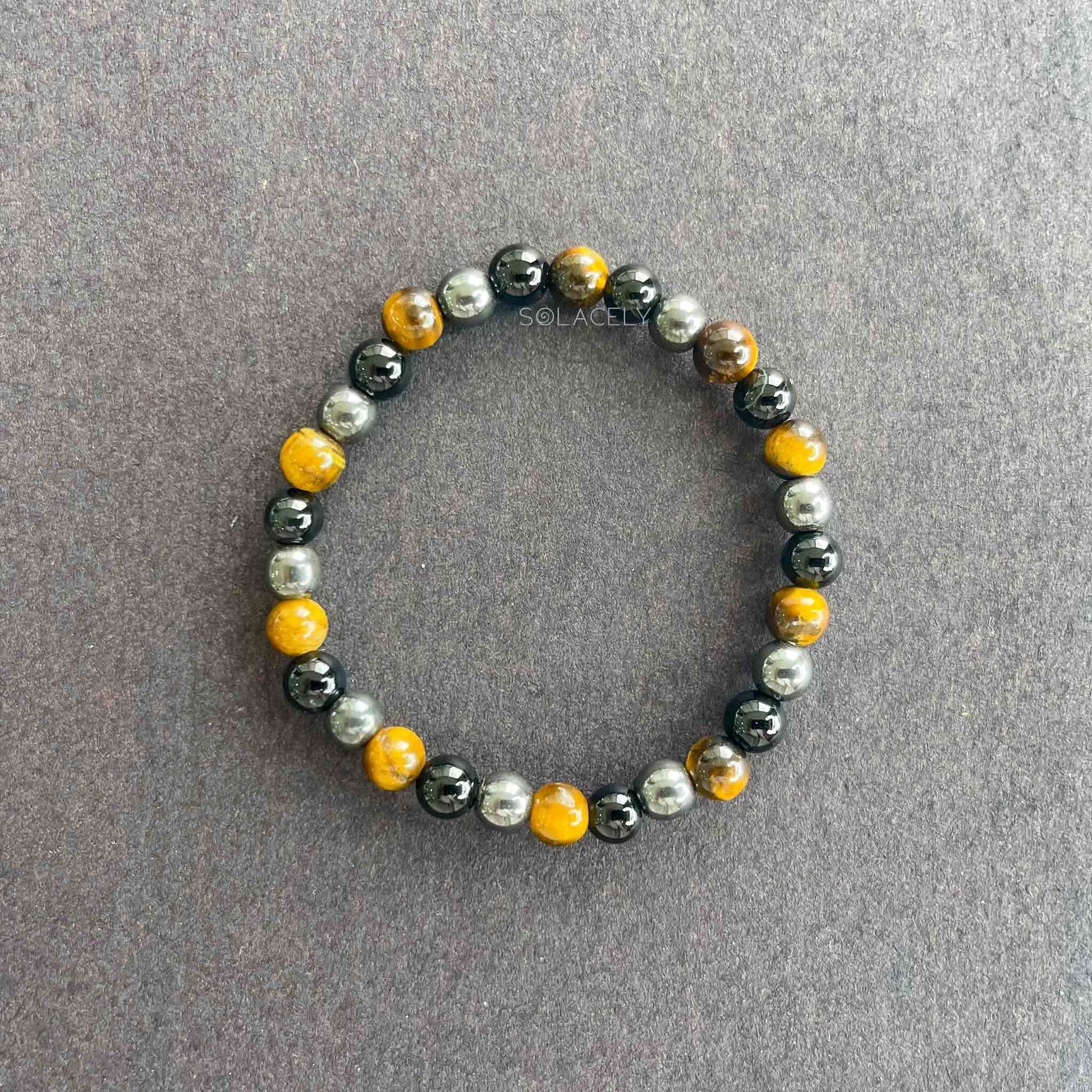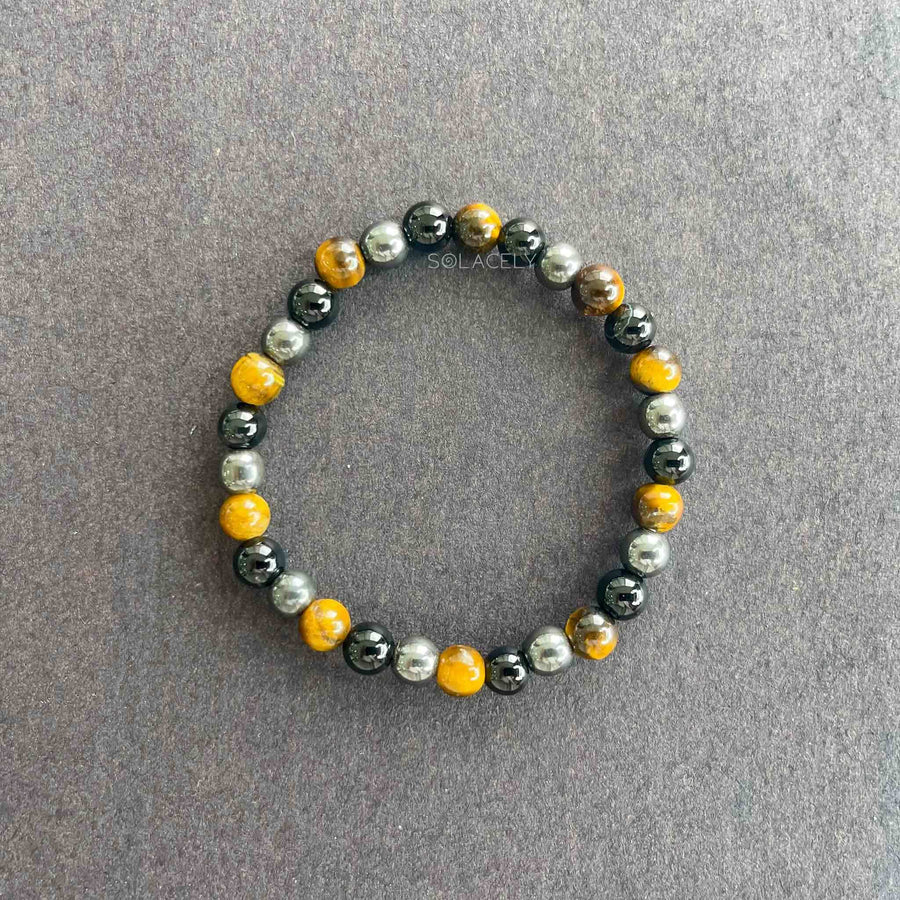 This triple protection bracelet keeps you grounded and safe. Hematite for balance, Tiger’s Eye for courage, and Tourmaline for energy shield.